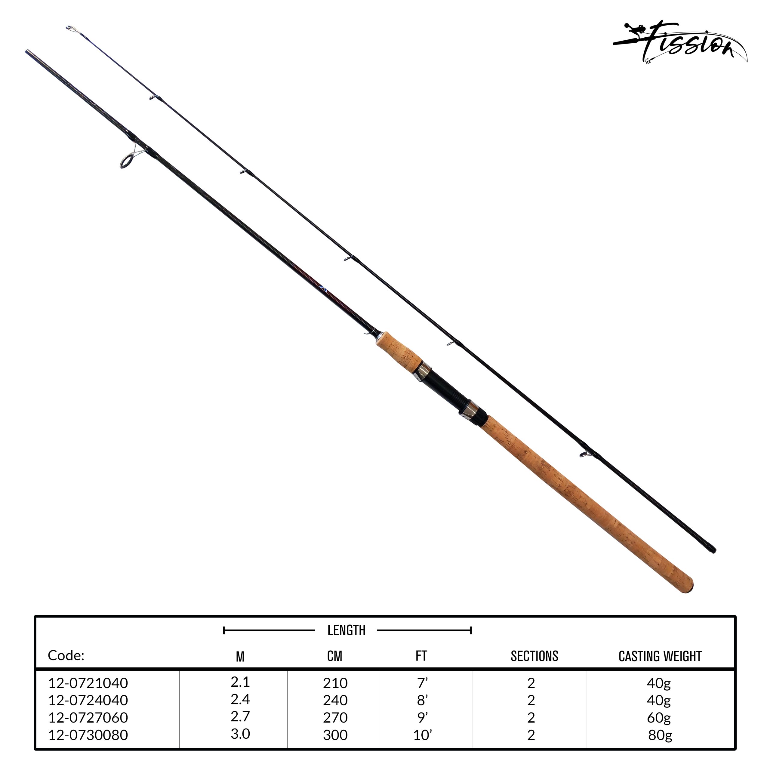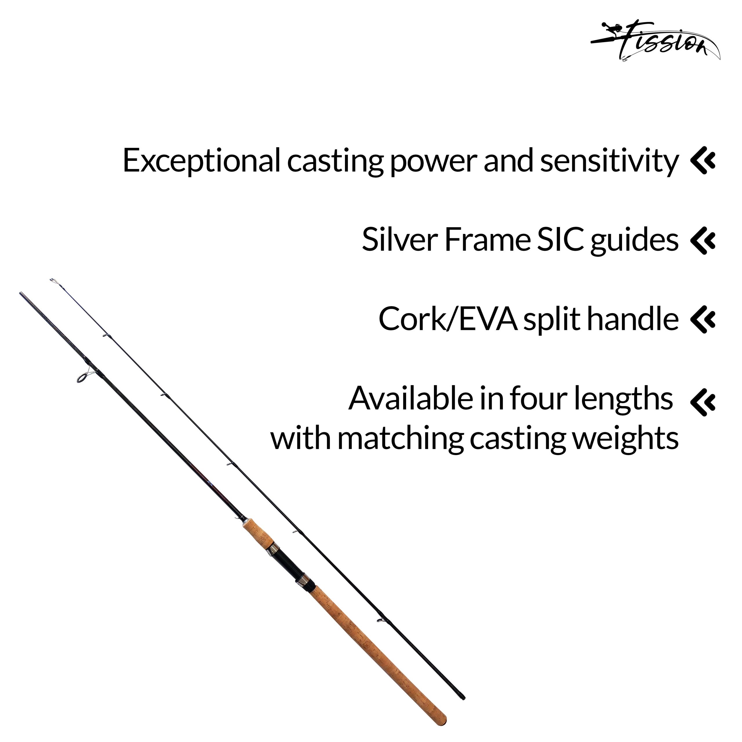 The FISSION X WRAP CARBON Rod delivers strength, precision, and comfort for serious lure anglers. Built from a carbon blank with X-Wrap reinforcement, this 2-piece rod offers exceptional casting power and sensitivity. Featuring Silver Frame SIC guides for smooth line flow and a Cork/EVA split handle for ergonomic grip. Available in four lengths with matching casting weights: