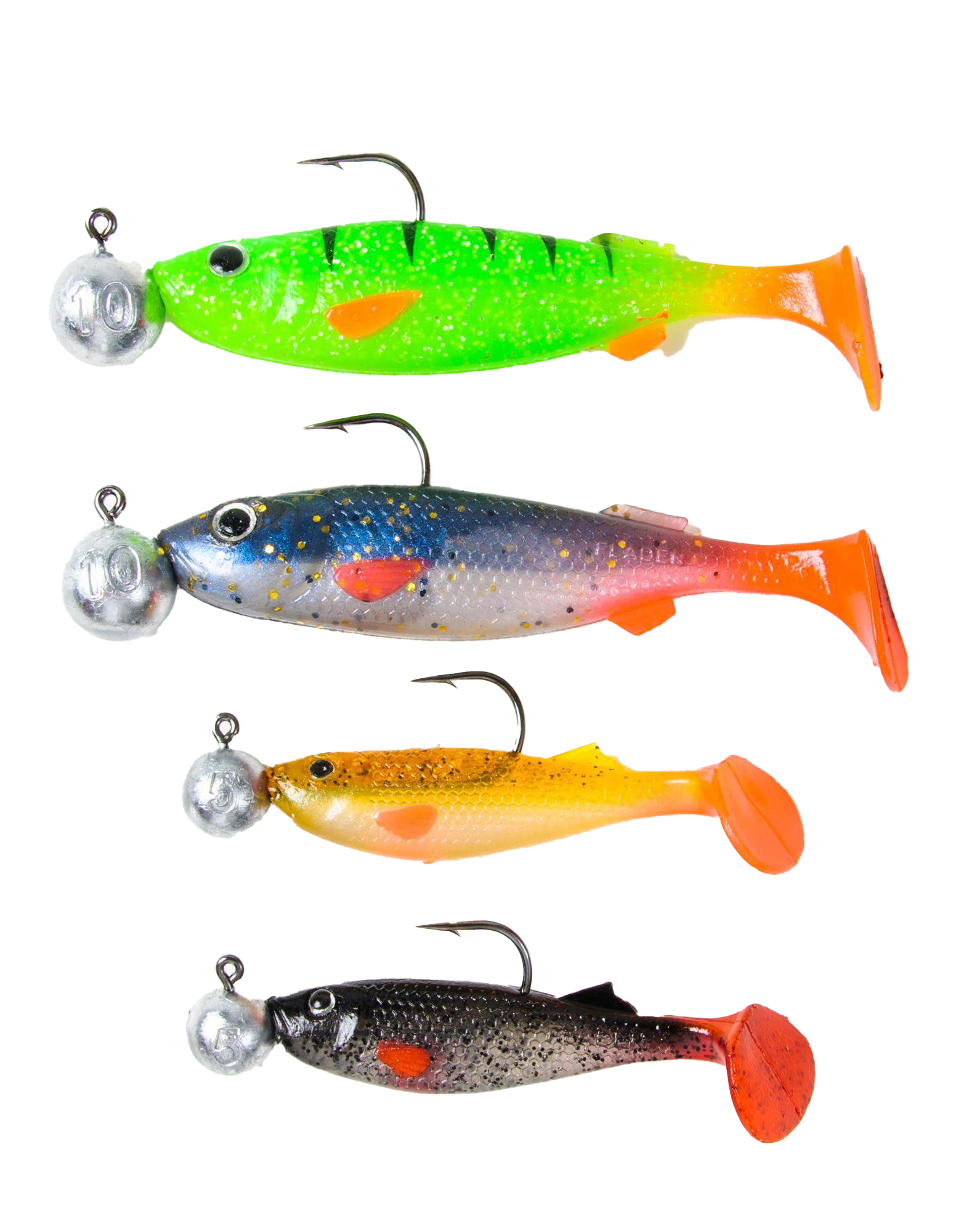 • 4 ready rigged soft lures with jigheads