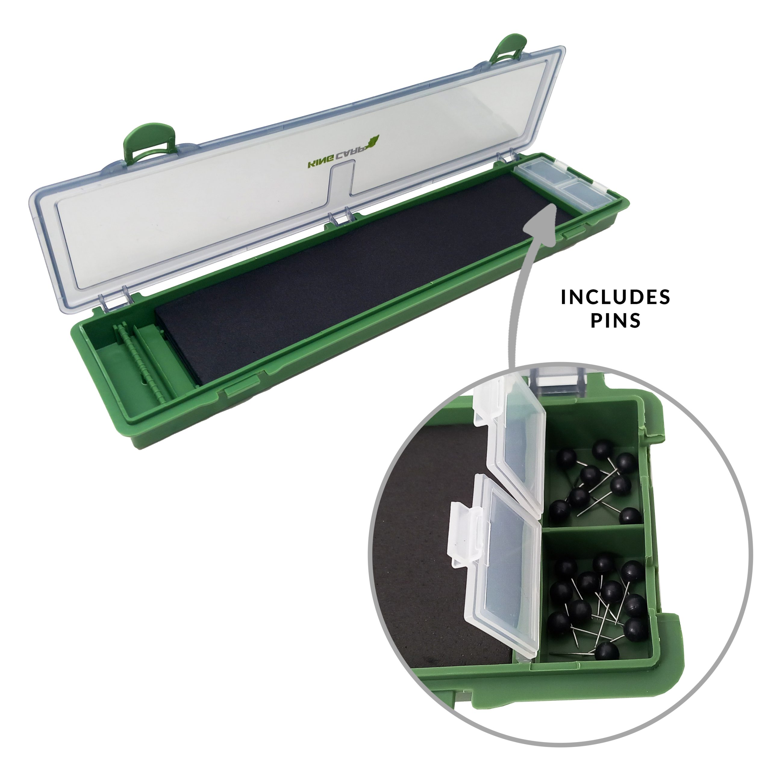 Keep your carp rigs perfectly organised and protected with the KINGCARP Hard Rig Case. Built for serious UK anglers, this tough, impact-resistant case includes a fitted rig board and secure pins to store hair rigs and terminal tackle neatly and tangle-free. Compact yet spacious, it’s ideal for session anglers and quick day trips.