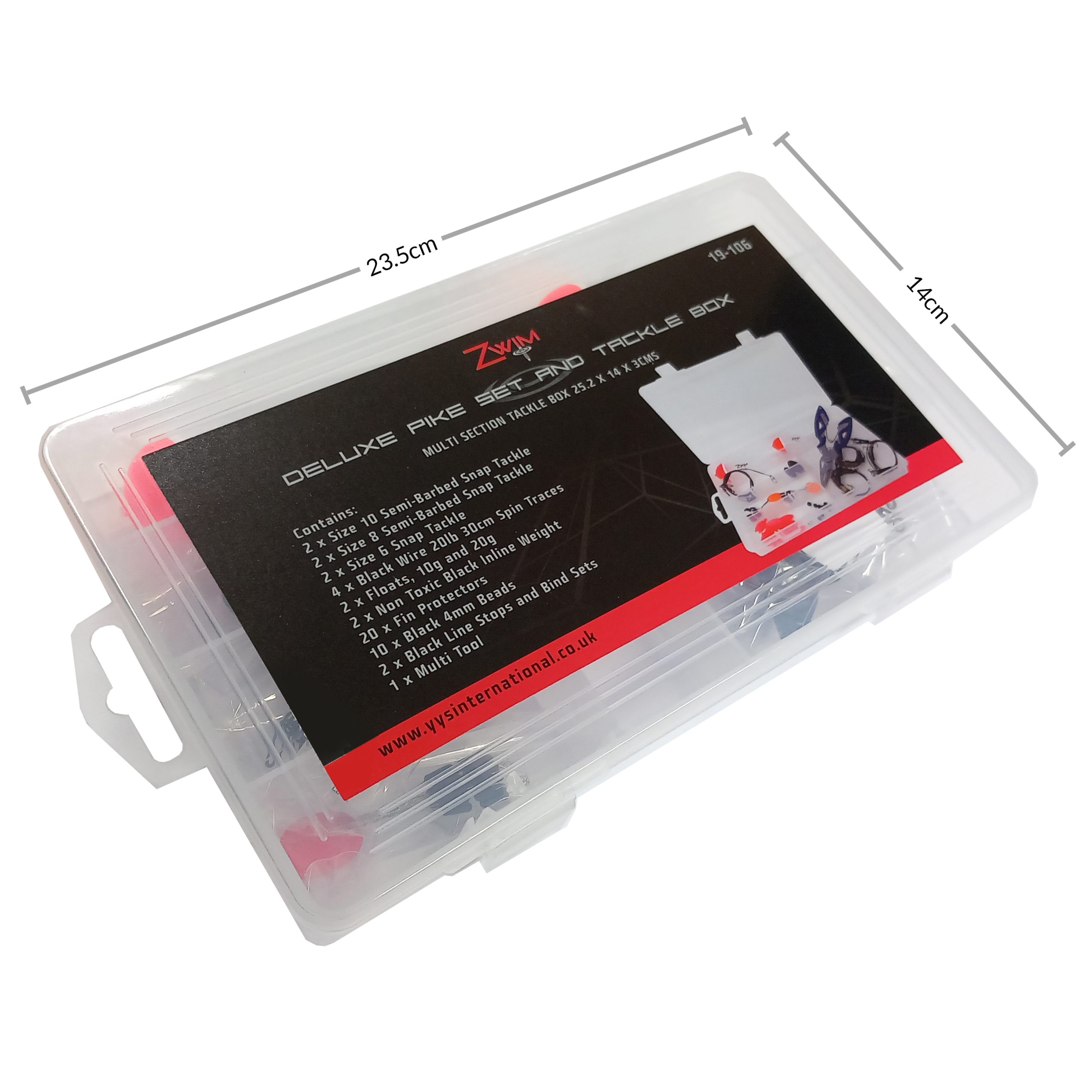 • Handy multi-tool and compact tackle box (25.2 × 14 × 3 cm)