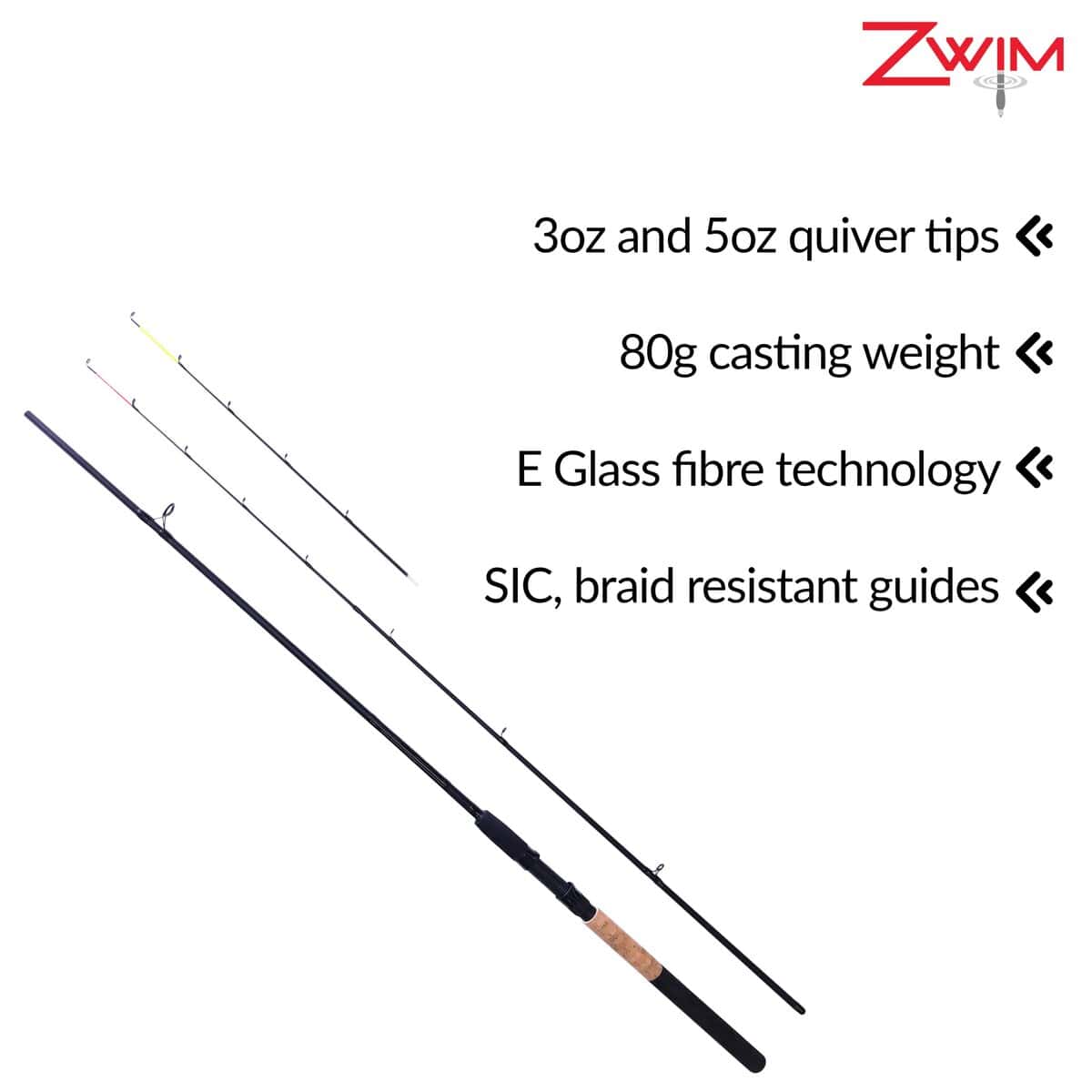 The ZWIM 2pc Feeder Combo pairs a responsive fiberglass rod with a high-performance spinning reel, delivering the ideal setup for bottom-feeding fish in UK waters. With two quiver tips (3oz & 5oz), an 80g casting weight, and a smooth-action reel, this combo offers versatility, control, and casting accuracy for a range of feeder fishing styles.